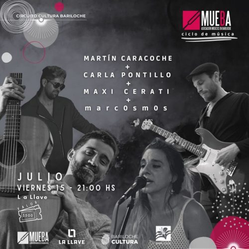 Luego del éxito vivido en la primera fecha del ciclo de música, nos volvemos a encontrar el viernes 15 de julio a las 21:00 hs en la Escuela Municipal de Arte La Llave. Así se dará lugar a la segunda fecha del ciclo de música MUEBA, organizado por la Subsecretaría de Cultura de Bariloche y co-producido por MUEBA (Asociación de Musicxs en Bariloche).