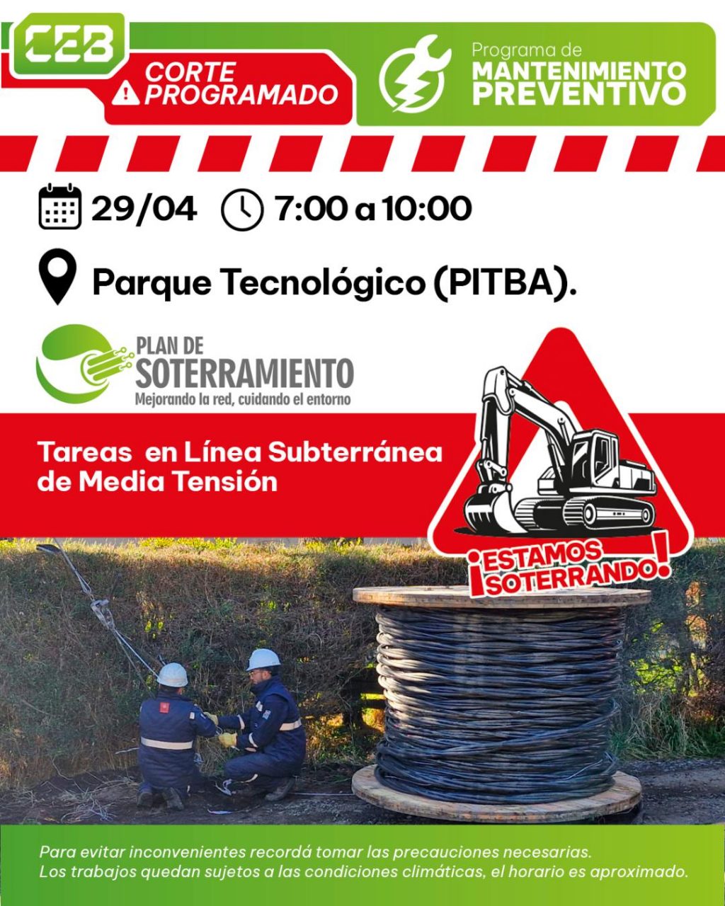 CEB: corte programado por tareas de soterramiento