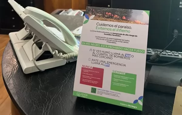 Ante la situación de riesgo extremo de incendios forestales en la Zona Andina, la Asociación Empresaria Hotelera Gastronómica de Bariloche (AEHGB) lanzó una campaña unificada de prevención, en articulación con las acciones que lleva adelante el Gobierno de Río Negro.