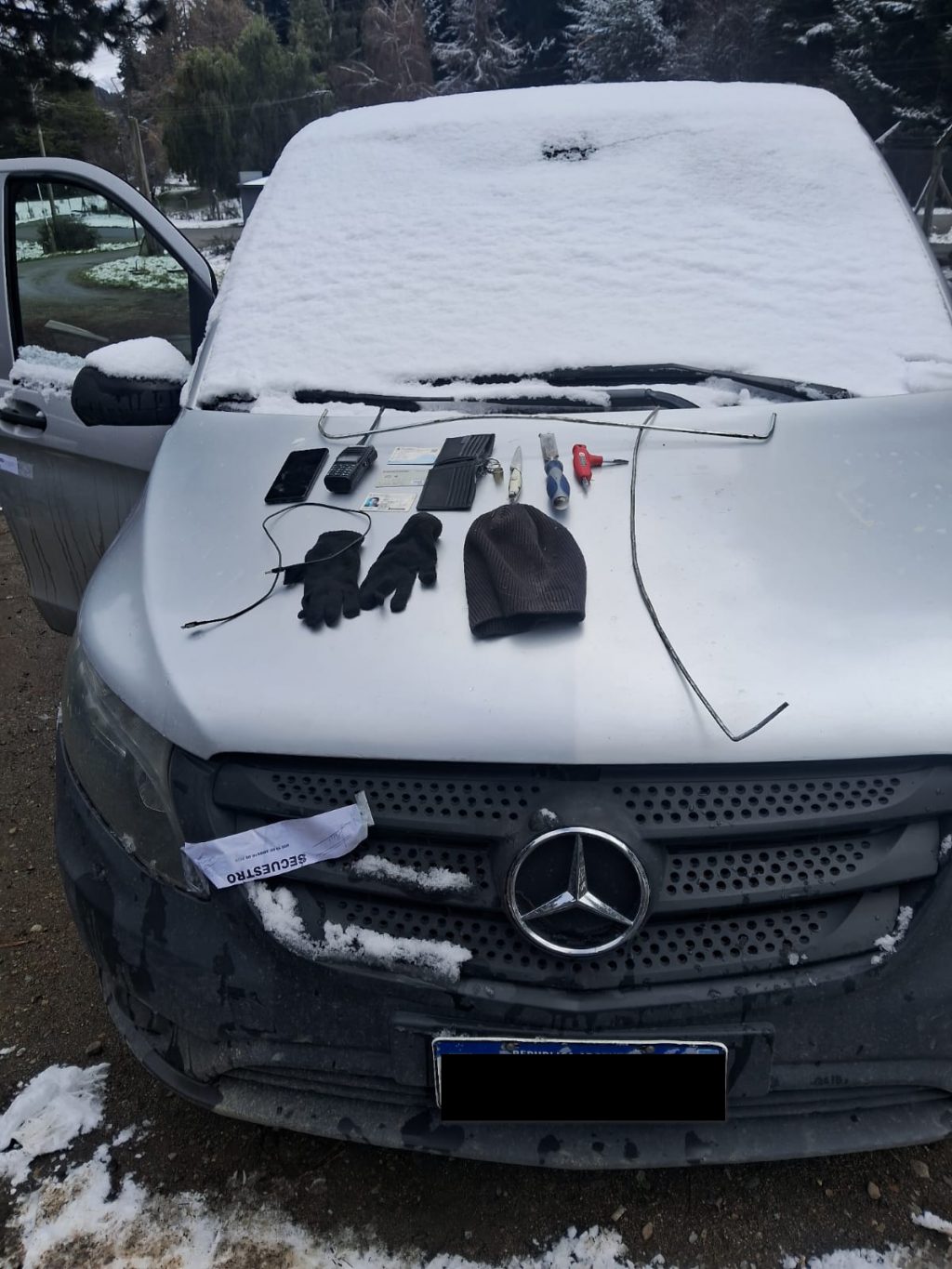 La Policía de Río Negro, con la correspondiente autorización judicial, requisó el vehículo Mercedes Benz en el que se movilizaban los tres sujetos que fueron detenidos días atrás en Circuito Chico, cuando cometían hechos delictivos, y secuestró importante material probatorio para incorporar a la causa.