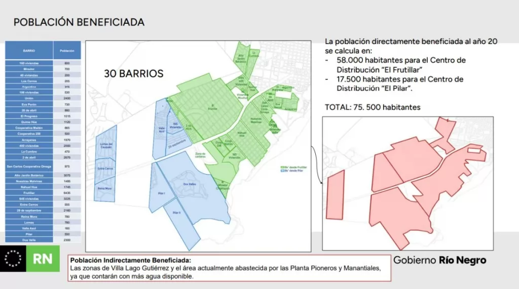 Asimismo, de forma indirecta, el proyecto mejorará el funcionamiento del sistema de agua potable de toda la localidad, ya que optimizará la distribución del recurso desde las instalaciones existentes.