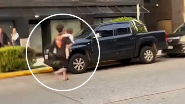 A través de sus redes sociales, la mujer colgó un video donde se puede ver como el hombre carga a la menor, la lleva hasta una camioneta y se retira ante las súplicas de ella.